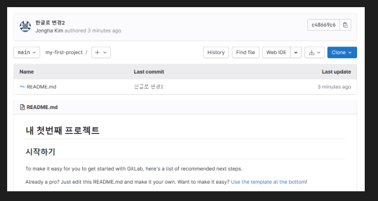 2023-01-14 22:36:43.713 [info] > git clone https://gitlab.com/~~~~~~~/my-first-project.git c:\dev\study\git\my-first-project --progress [2474ms]