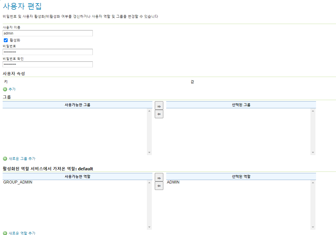 위 그림에서 사용자 이름 밑에 있는 admin을 클릭 하십시오.