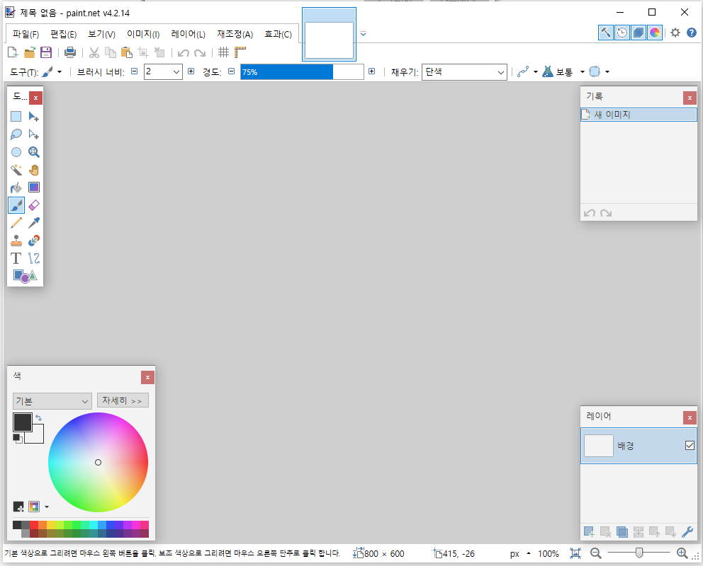 완료 눌러 주시면 Paint.net 이 시작 됩니다.