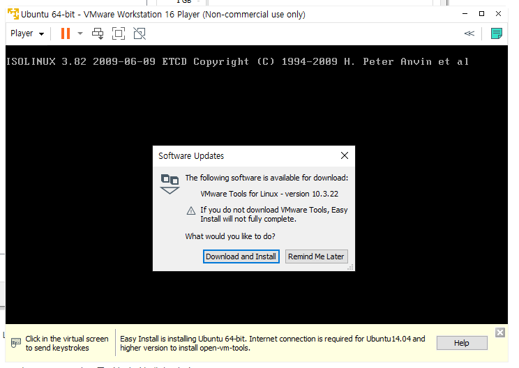 하지만 Vmware Tools는 나중에 설치해도 되기 때문에 나중에 설치 하겠습니다.
