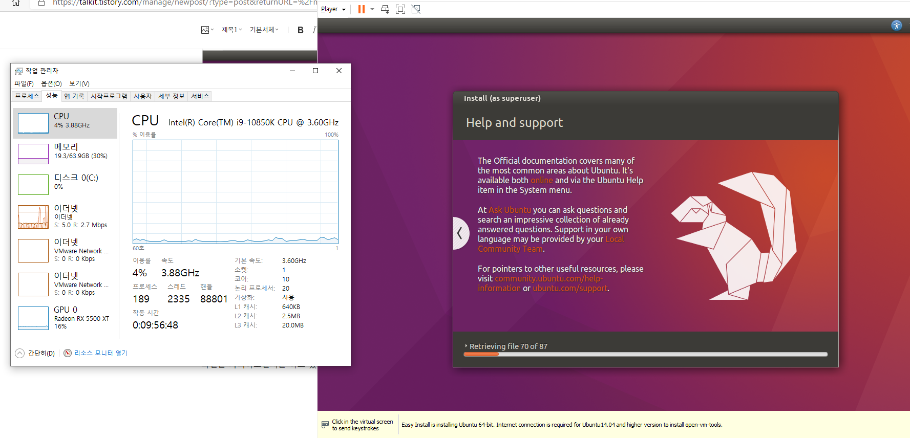 CPU는 i9 10세대 10850K에 메모리 64GB를 달아 놨더니 빵빵 합니다. ^^