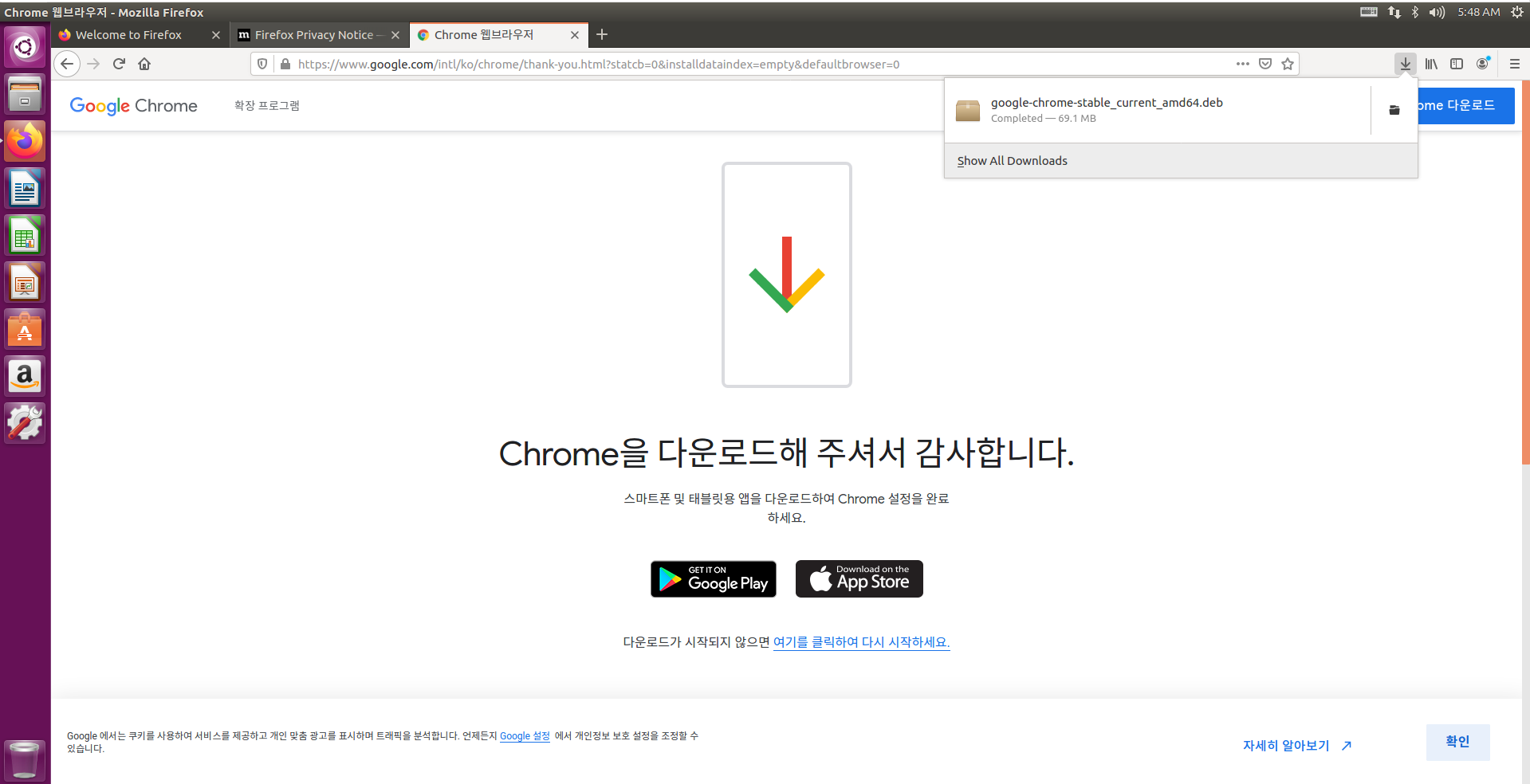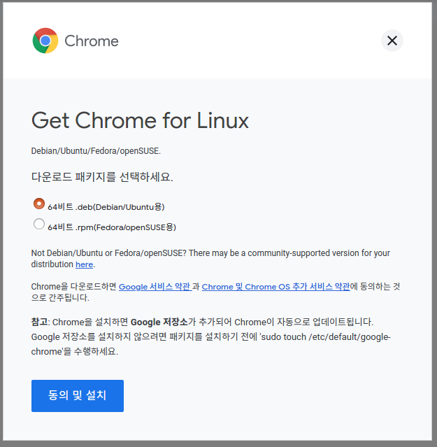 위 명령어를 실행하면 크롬이 설치 됩니다.