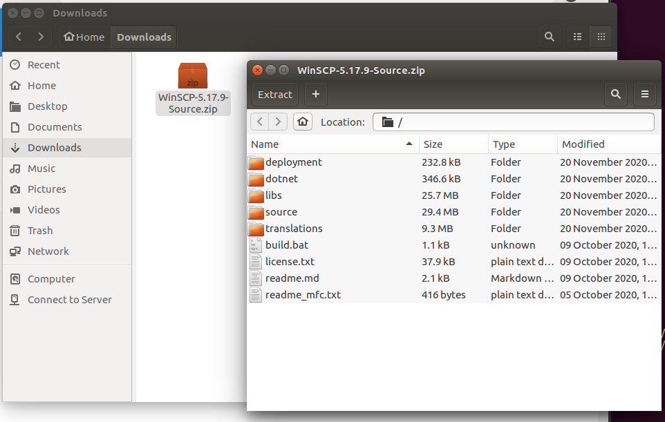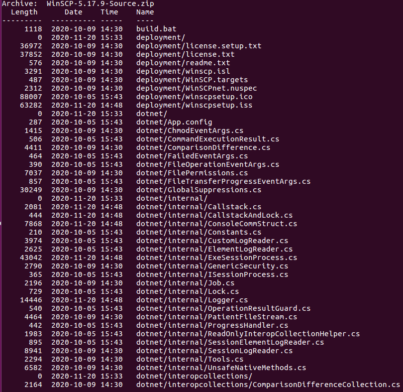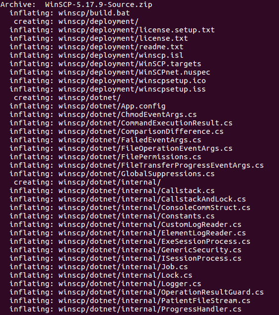 unzip -d winscp WinSCP-5.17.9-Source.zip