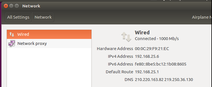 X Windows 상태에서 설정 Network 라는 아이콘을 클릭 하시면 위의 그림 처럼 아이피를 확인 할 수 있습니다.