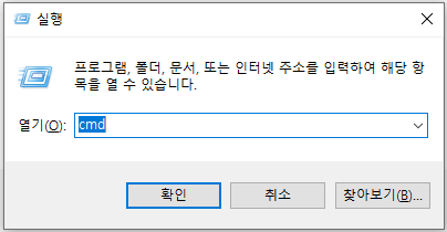 Win + R 누르시고, cmd 를 시행하십시오.