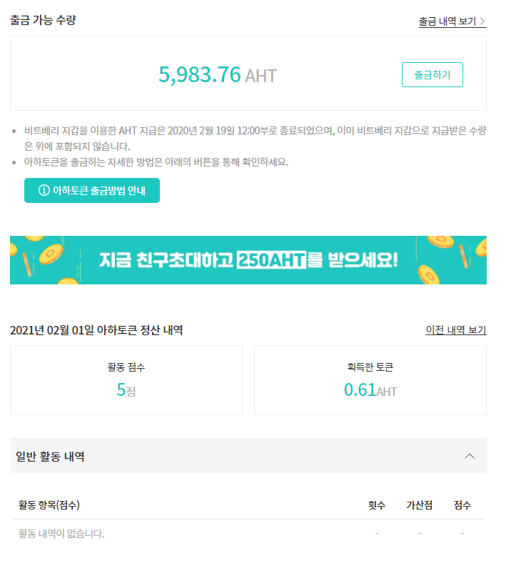 오늘은 그동안 모았던 아하 토큰을 출금해서 또 파려고 합니다.