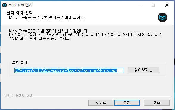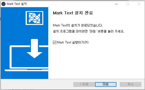 마침을 누르시면 Mark Text 프로그램이 실행 됩니다.