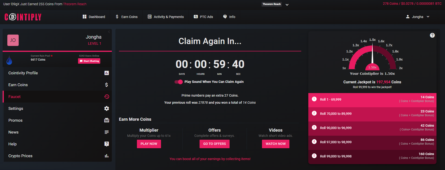 요즘 제가 해보고 있는 CoingtiPly 입니다.