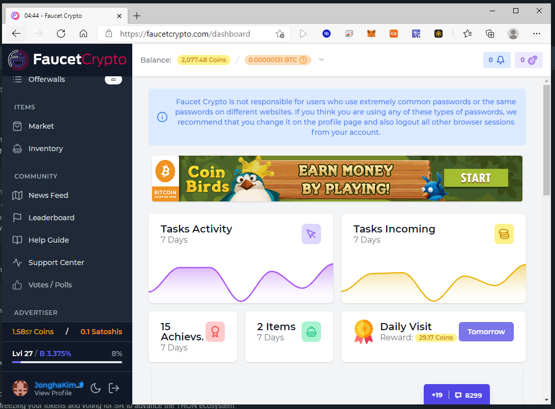 그 경험치로 인해서 ^^ 약간의 코인을 더 받으실 수 있습니다. ^^
