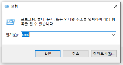 Windows 키 + R 키를 누르시고 cmd 를 입력 하십시오.