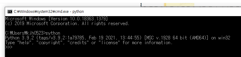 아까 PATH를 잡아 달라고 했기 때문에 python이 실행 될 것입니다.