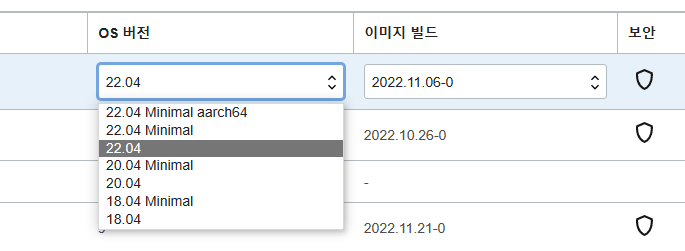 하지마는 저는 그냥 선택된 대로 22.04 버전을 사용하겠습니다.