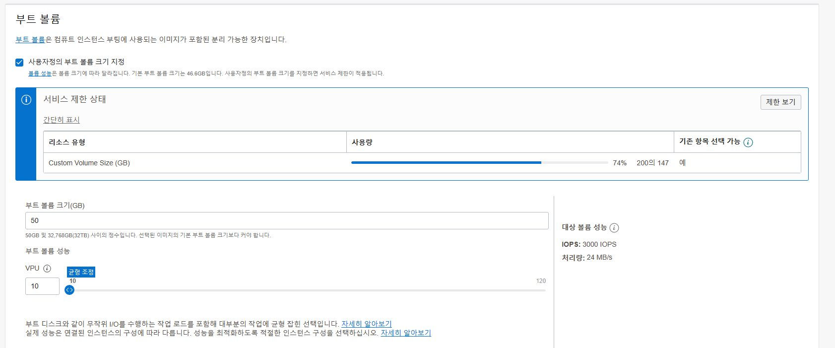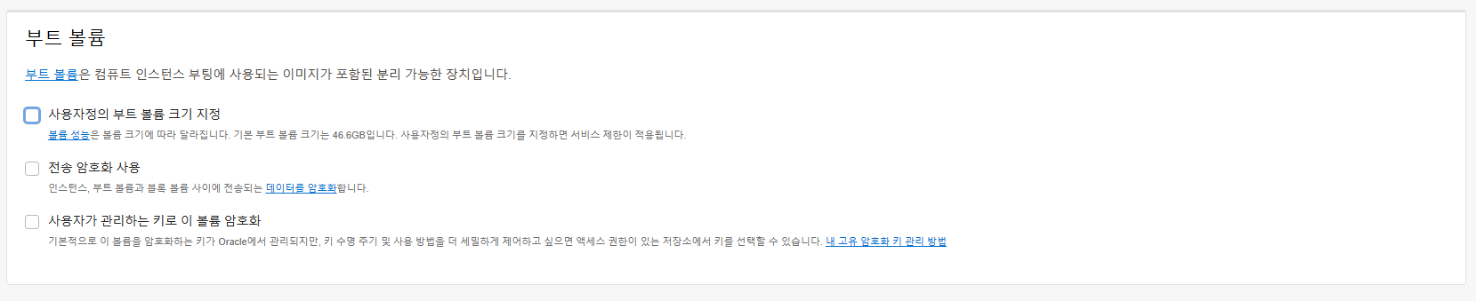 부트 볼륨은 설정하지 않으면, 50GB로 되어 있습니다.