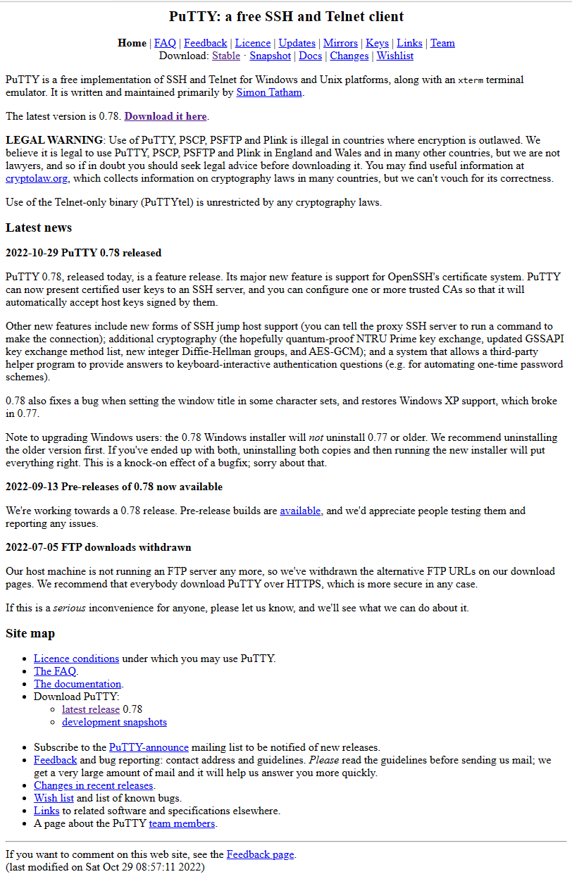 https://www.chiark.greenend.org.uk/~sgtatham/putty/latest.html