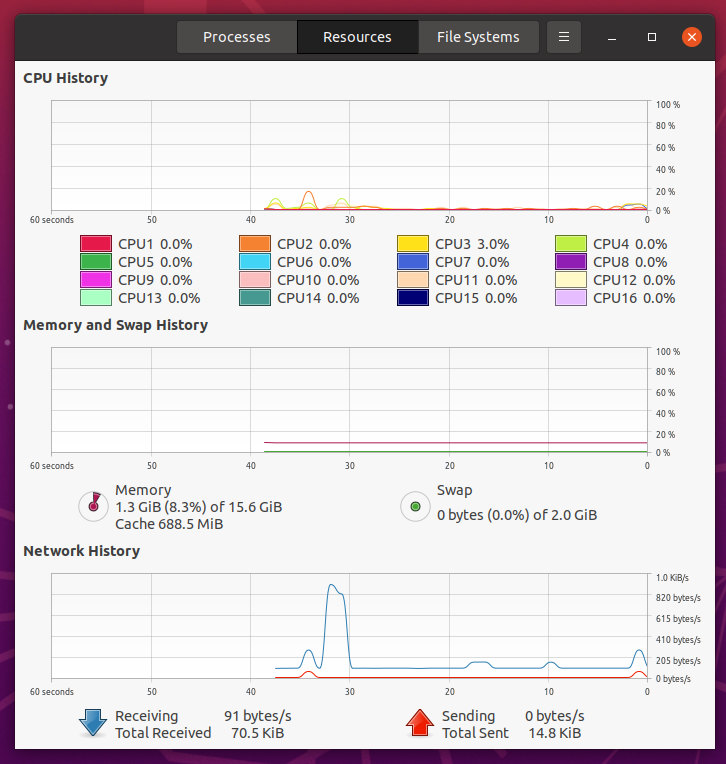 저기 보시면 CPU 16개, 메모리 약 16GB가 보이네요 ^^
