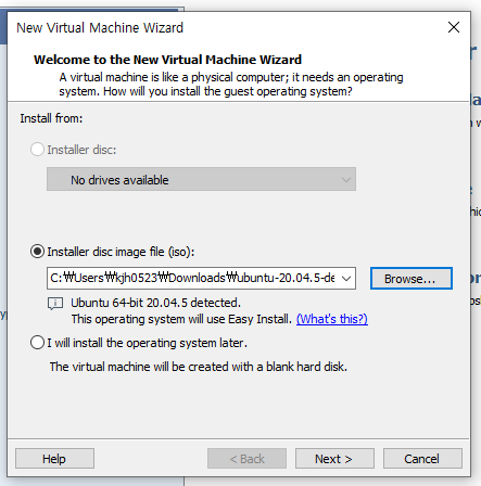 다운로드 받은 20.04 iso 파일을 선택 합니다.