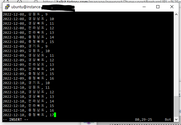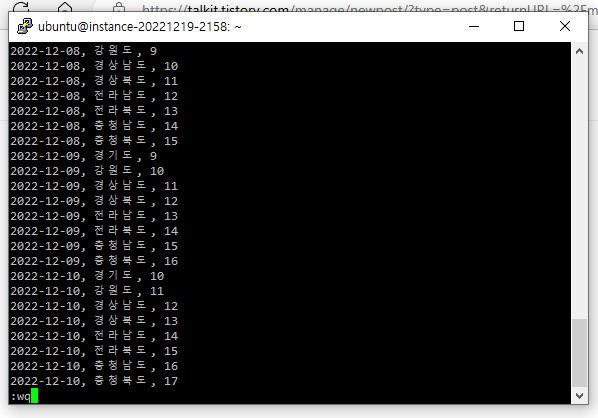 여기서 :wq 를 순서대로 입력하고 엔터를 칩니다.