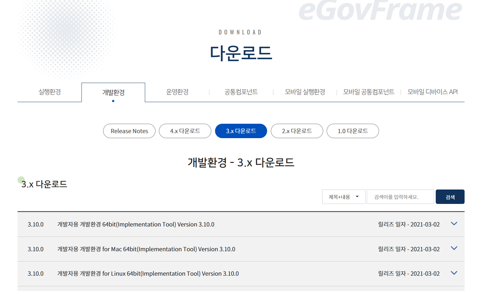 개발환경 - 3.x 다운로드 | 표준프레임워크 포털 eGovFrame