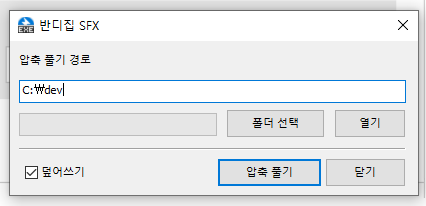 저는 c:\dev에 설치 했기 때문에 잘 설치 되었습니다.