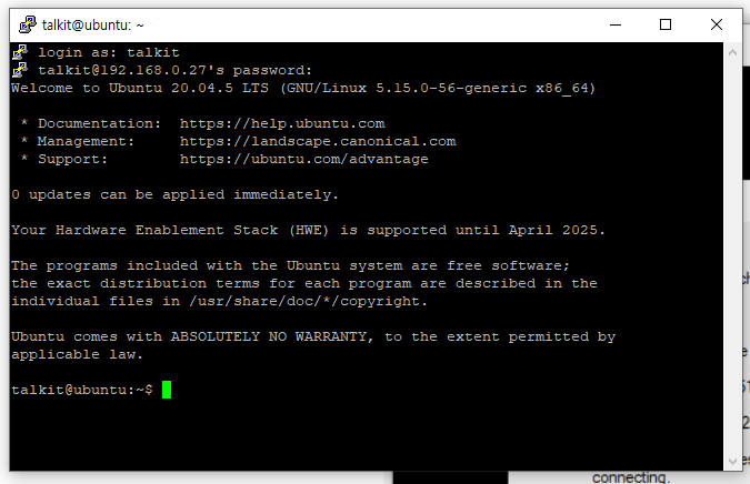 오늘은 여러번 설치한 우분투 서버에 접속을 해보았습니다.