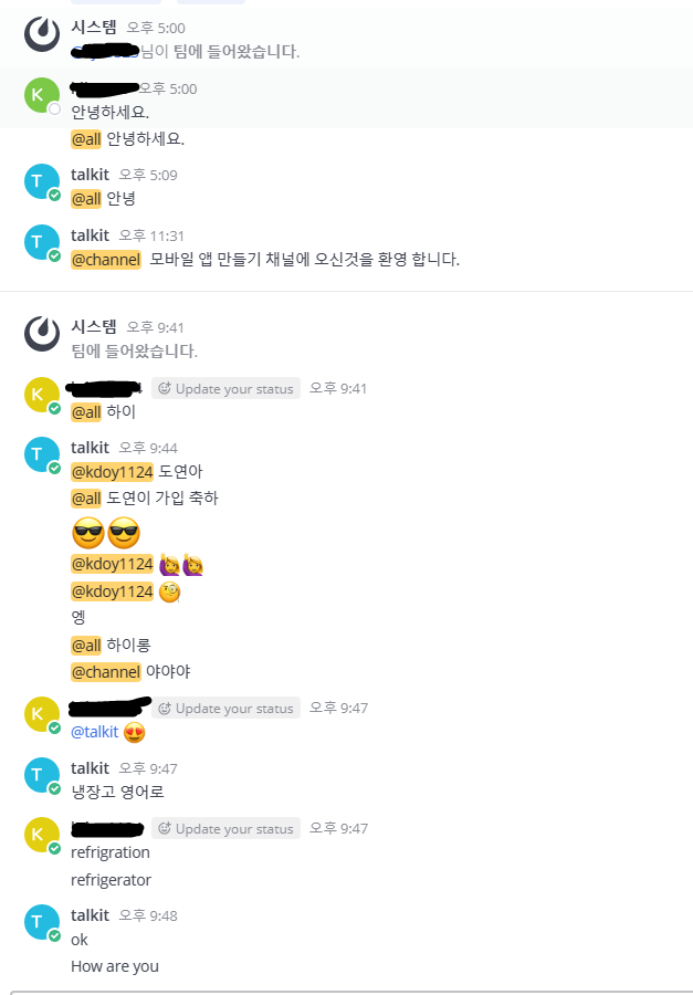 이런식으로 초대된 사용자들과 대화가 가능 합니다.