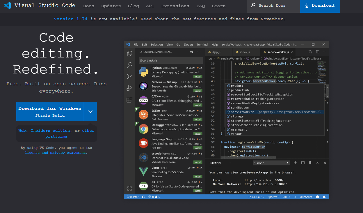 Visual Studio Code is free and available on your favorite platform - Linux, macOS, and Windows. Download Visual Studio Code to experience a redefined code editor, optimized for building and debugging modern web and cloud applications.