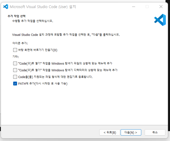 저기서 선택을 하십시오. 원하는 선택을 하시면 됩니다. 저는 그냥 다음 누릅니다.
