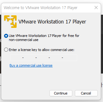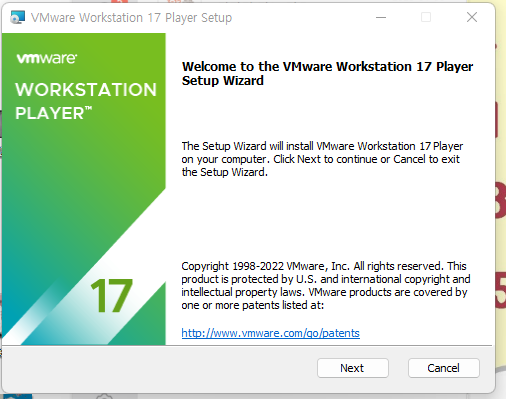 음 VMWARE 설치 문서 부터 적었어야 했는데 간단하게 적겠습니다. VMware Workstation Player 다운로드 | VMware | KR 위 사이트에 가셔서 다운로드하고 다음 다음 눌러서 설치 하시면 됩니다. 라이센스는 우