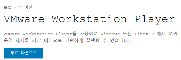 다운로드는 저기 Workstation Player 를 다운로드할 계획입니다.