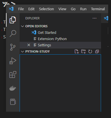 일단 Visual Studio Code를 열고 Hello Python World 를 찍고 싶어서요 아까 저 화면에서 찍어도 되지만요 ^^
