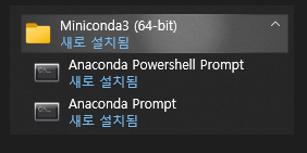 아까 설치하다가 ^^ 보니까 Anaconda 용 Prompt를 이용하라고 권고하는 부분이 있어서 저는 저걸 눌러 보겠습니다.