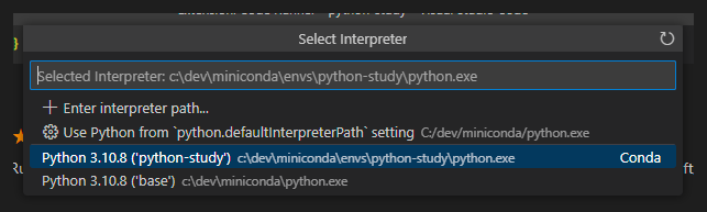 저는 python-study라는 가장 환경을 만들었습니다. ^^