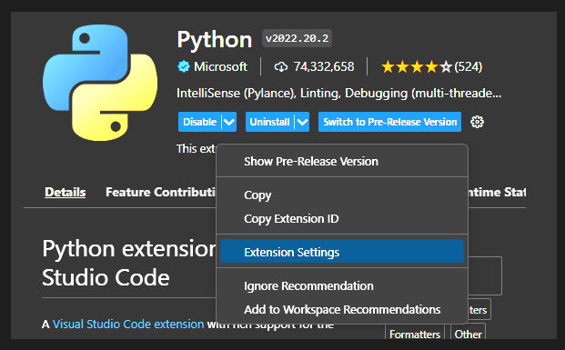 위와 같이 나오구요 ^^ Extension Settings를 선택 하십시오.
