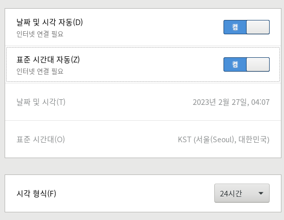 저는 살짝 유선 연결을 했더니 바로 한국 표준시로 바뀌네요 ^^