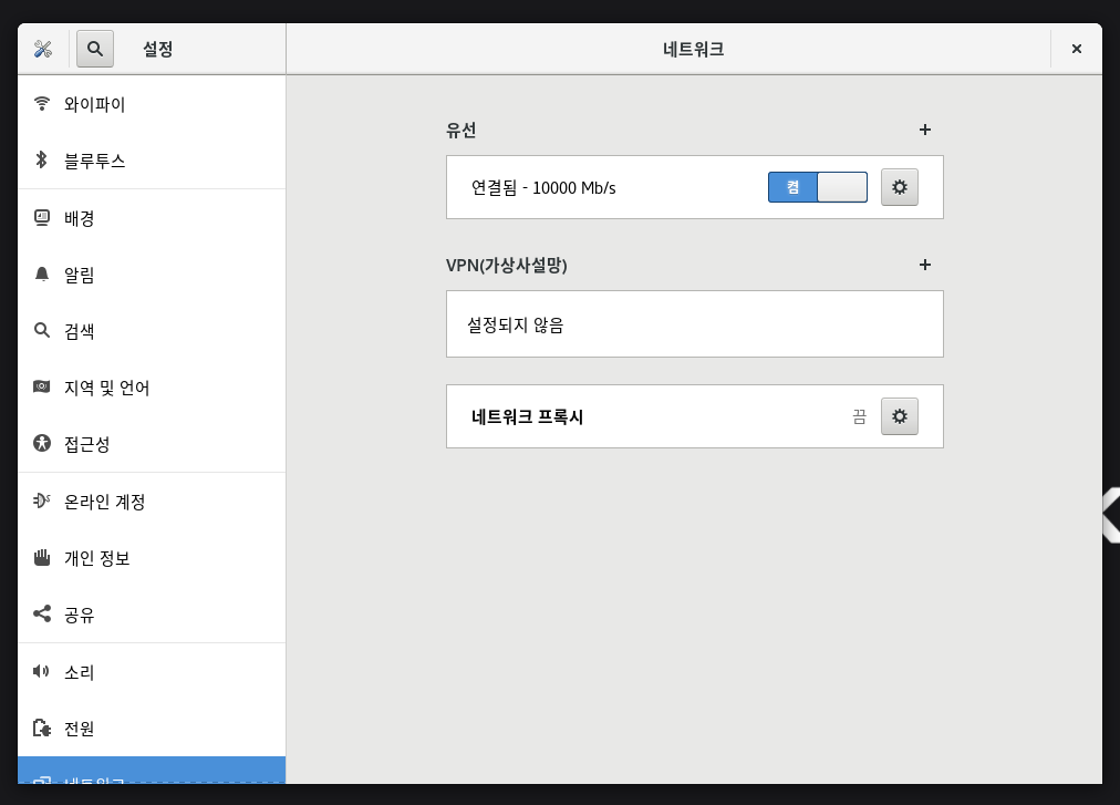 그래도 그전에 제가 답답하기 때문에 저기 유선 네트워크 설정을 클릭하십시오.