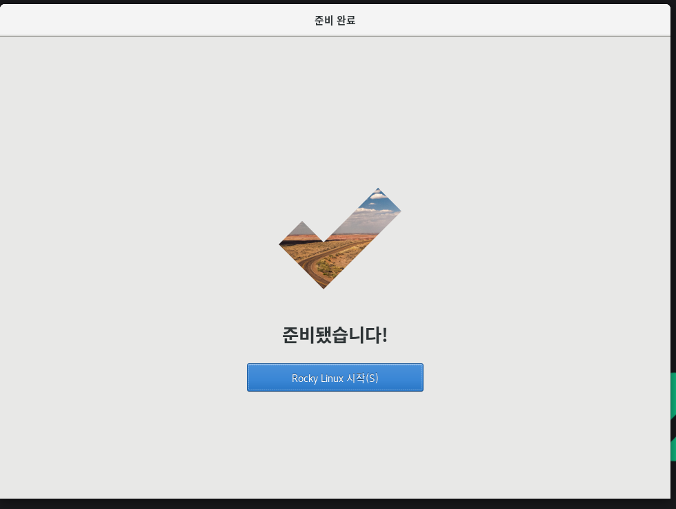 이렇게 끝이 나면 Rock Linux 시작 버튼을 누르시면 됩니다.