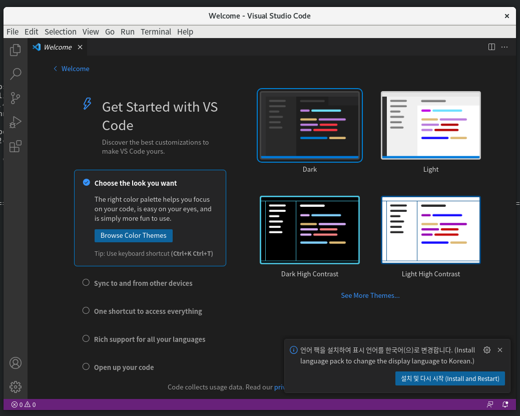 Visual Studio Code가 들어옴으로 해서 리눅스가 원래도 훌륭한 개발 툴이었지만 ^^ 더 훌륭한 개발 툴이 되었습니다.
