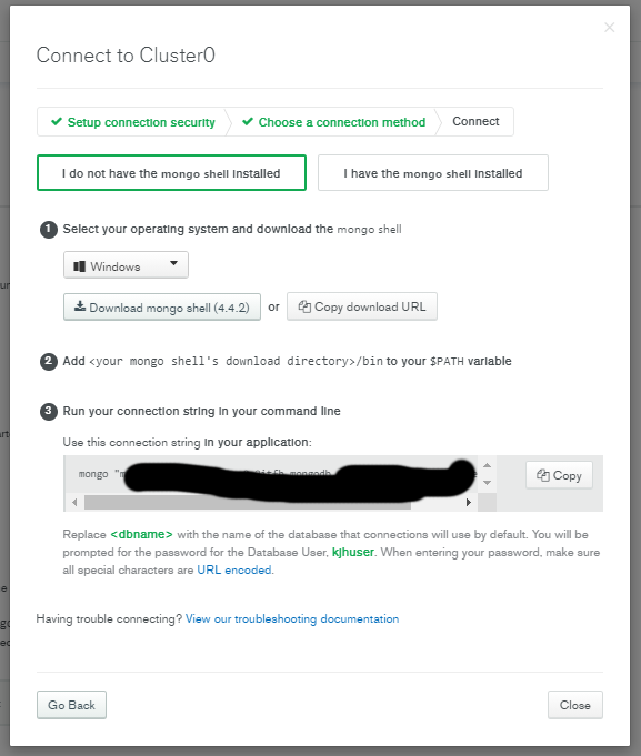 그래서, Connect with the mongo shell을 이용해서 진행 했습니다.