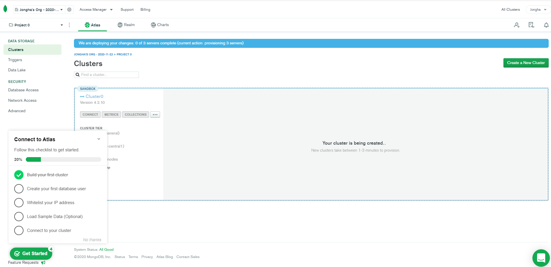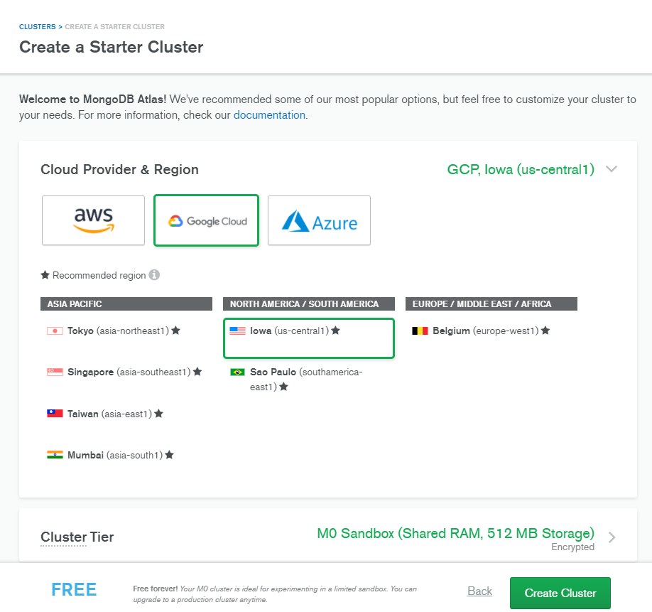 그래서 공부도 해볼 겸 몽고디비 아틀라스에 가입해본다.