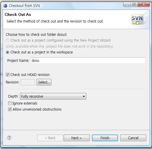 오늘 이야기 하고자 하는 것은 서브 이클립스를 이용해서 실제로 Subversion 서버에 접속해서 다운 받는 이야기를 하고자 합니다.