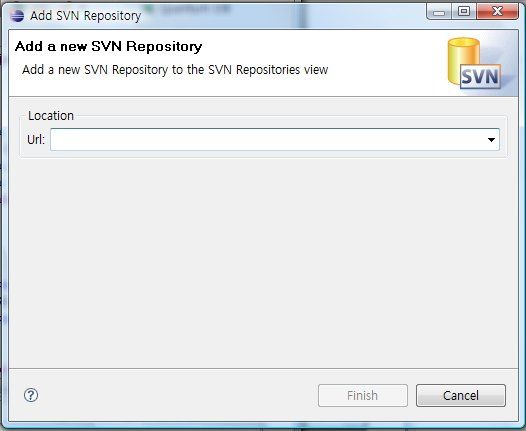 5. Add SVN Respository 화면에서 Subversion 서버 주소를 적으십시오
