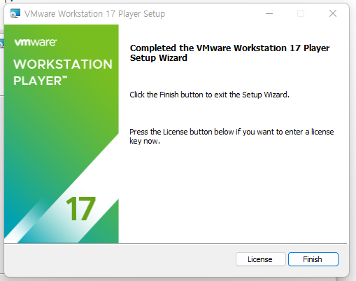 설치가 끝나면 저렇게 나옵니다. Player는 라이센스 등록을 안해도 무료 입니다.