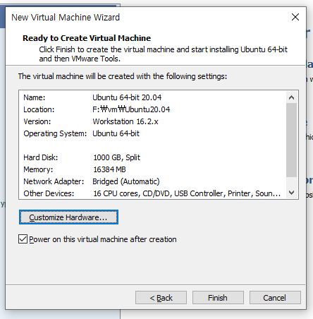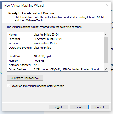 리눅스/Linux VMWARE에 우분투/Ubuntu 20.04 설치하기/Install