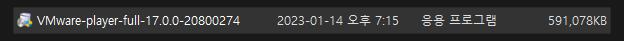 시작 메뉴에서 vmware라고 치시거나, V근처에서 찾으시면 저렇게 VMware 가 있습니다. 거기서 17 Player를 클릭하십시오.