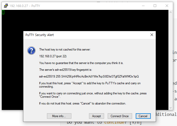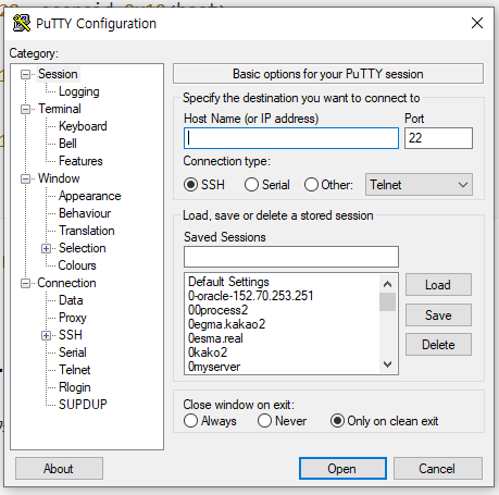 이제 윈도우즈로 돌아와서 Putty를 켜십시오.