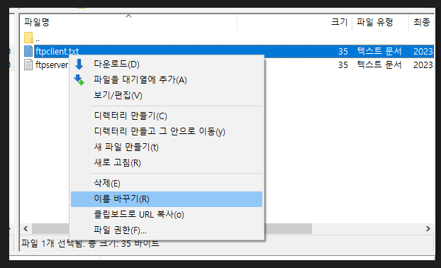 다운로드할 파일이 있어야 되서 파일명을 변경해보겠습니다.