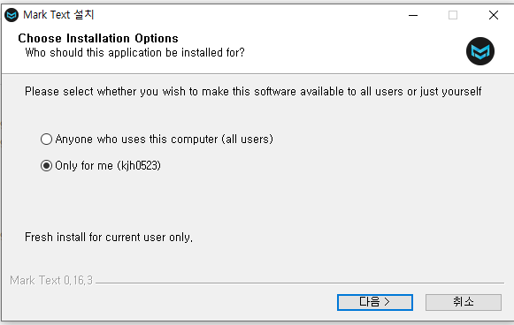 마침을 누르시면 Mark Text 프로그램이 실행 됩니다.