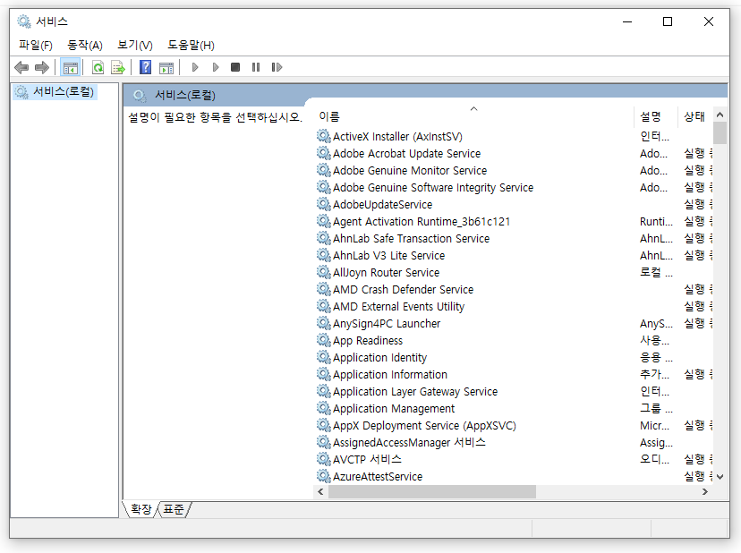 위 그림은 리눅스가 아니라 ^^ 윈도우즈 서비스 관리 콘솔입니다. ^^